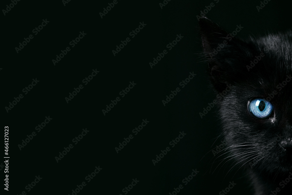 Black Kitten Over Black Background Portrait Of Halloween Cat With Blue Eyes Panoramic Layout Stock Photo Adobe Stock